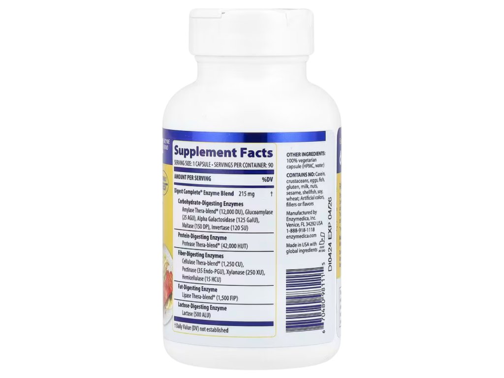 Obsažené enzymy pomáhají rozkládat jednotlivé složky potravy na lépe vstřebatelné části. Díky tomu může být trávení efektivnější a komfortnější, zejména při konzumaci těžších nebo kombinovaných jídel. Technologie Thera-blend® umožňuje, aby enzymy pracovaly nejen v žaludku, ale i v dalších částech trávicího systému, kde přirozeně dochází k trávení živin.