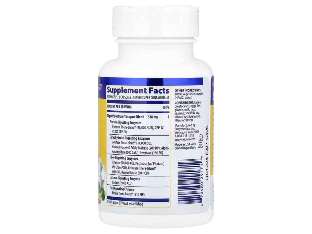 Unikátní technologie Thera-blend™ kombinuje více druhů enzymů, které fungují v širokém spektru pH po celou dobu trávení, od žaludku až po tenké střevo. Zatímco běžné enzymy ztrácejí svou aktivitu v různých částech trávicího systému, Thera-blend™ zajišťuje maximální účinnost v celém trávicím procesu, a tím podporuje efektivní rozklad tuků, bílkovin, sacharidů i vlákniny.
